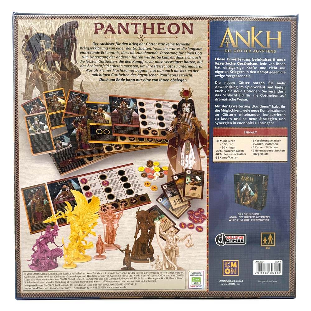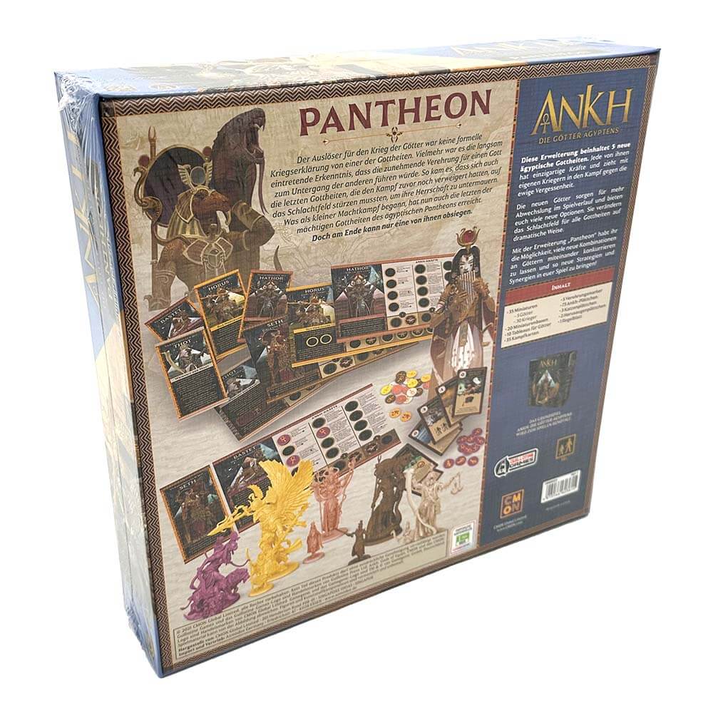 Die Erweiterung Pantheon für das Strategiespiel Ankh: Die Götter Ägyptens beinhaltet fünf neue ägyptische Gottheiten. Jede von ihnen hat einzigartige Kräfte und zieht mit eigenen Kriegern in den Kampf gegen die ewige Vergessenheit. Die neuen Götter sorgen für mehr Abwechslung im Spielverlauf und bieten viele neue Optionen. Sie verändern das Schlachtfeld für alle Gottheiten auf dramatische Weise.