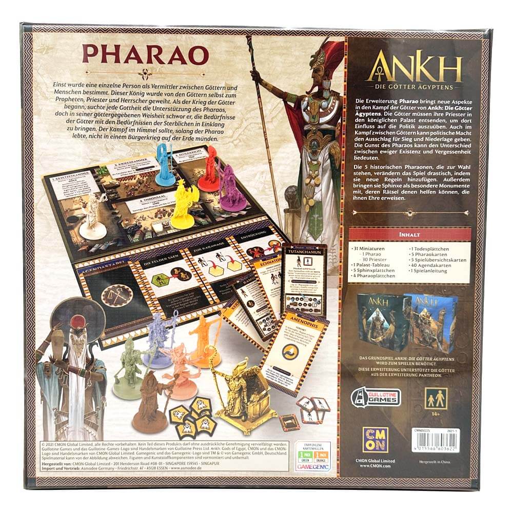 Die Erweiterung Pharao bringt neue Aspekte in den Kampf der Götter von Ankh: Die Götter Ägyptens. Die Götter müssen ihre Priester in den königlichen Palast entsenden, um dort Einfluss auf die Politik auszuüben. Auch im Kampf zwischen Göttern kann politische Macht den Ausschlag für Sieg und Niederlage geben. Die Gunst das Pharaos kann den Unterschied zwischen ewiger Existenz und Vergessenheit bedeuten.
