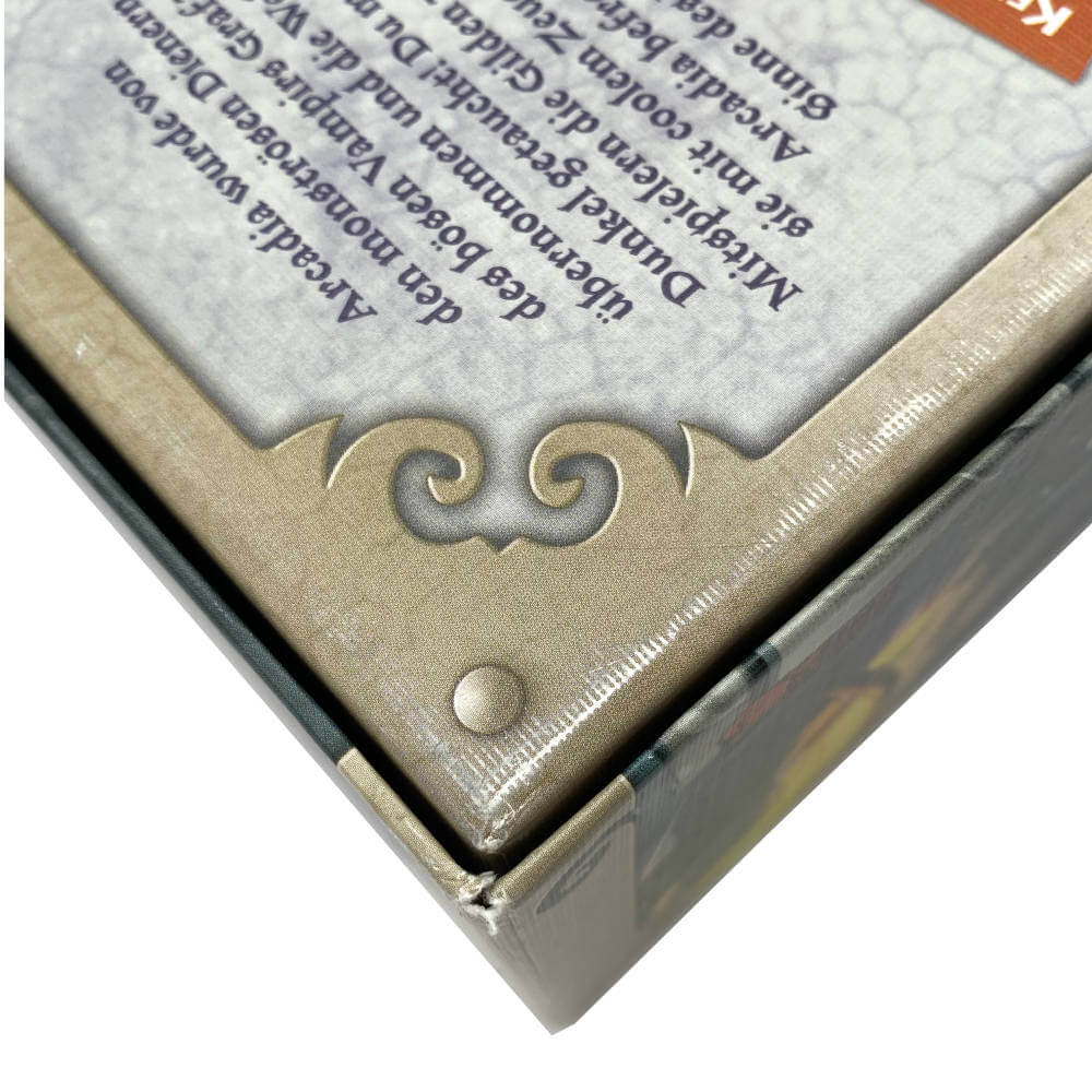 – leichte Gebrauchsspuren (Schachtel an der Rückseite leicht abgeschürft; Deckel an einer Ecke angeschlagen)