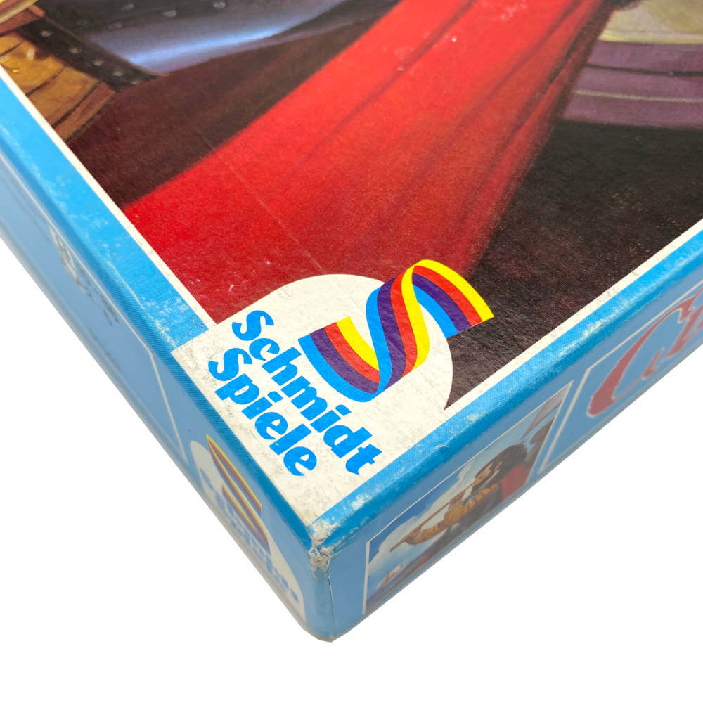 – starke Gebrauchsspuren an der Schachtel (Ecken leicht angeschlagen und abgeschürft, Rückseite abgeschürft)