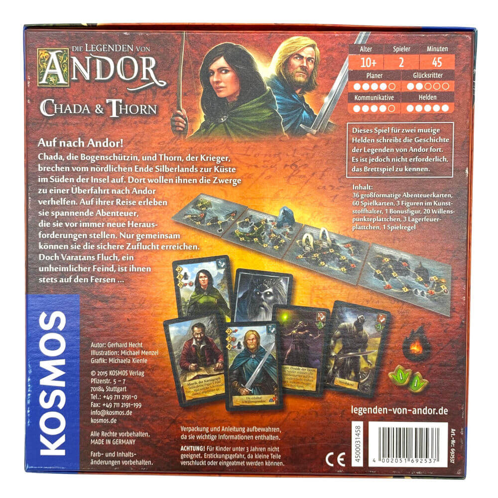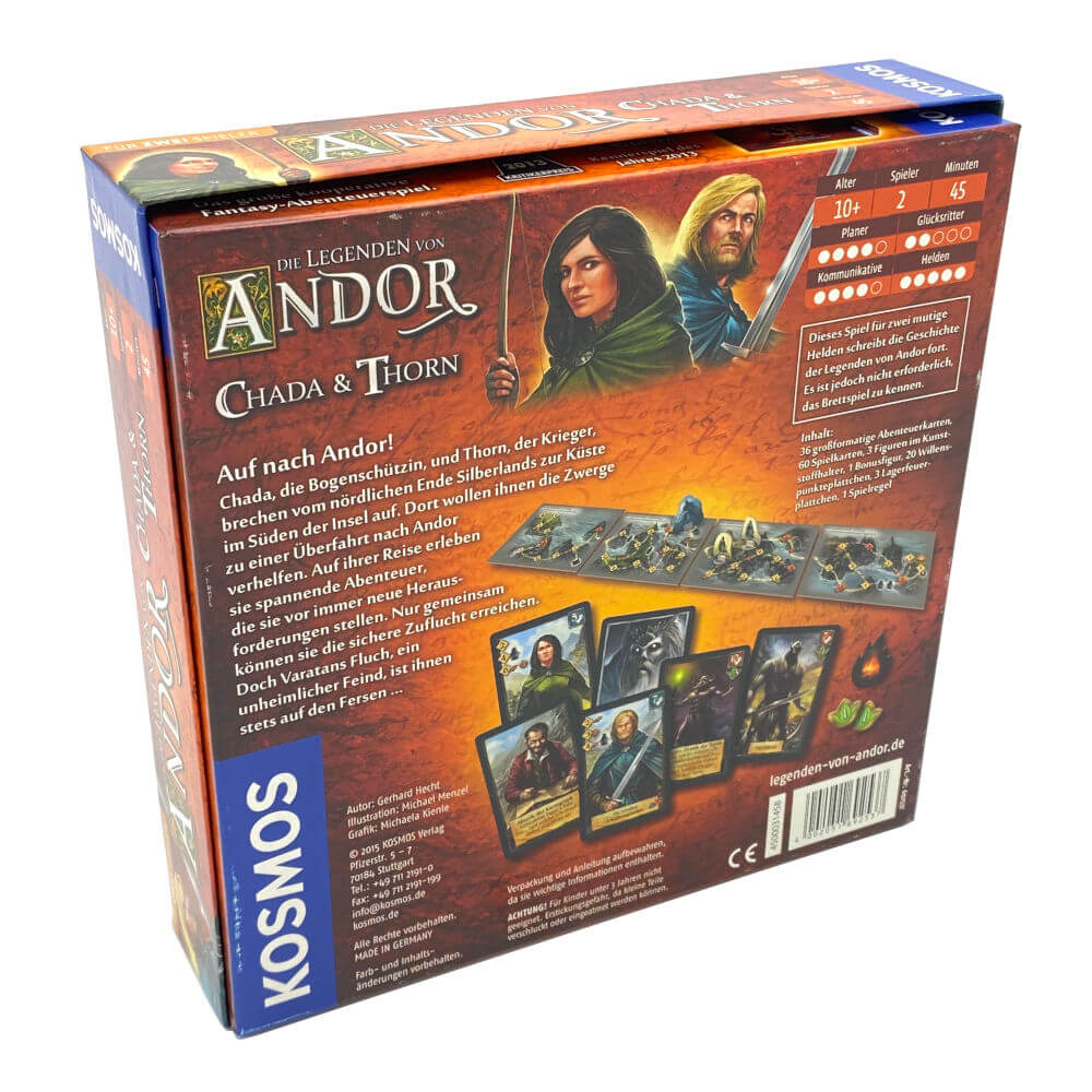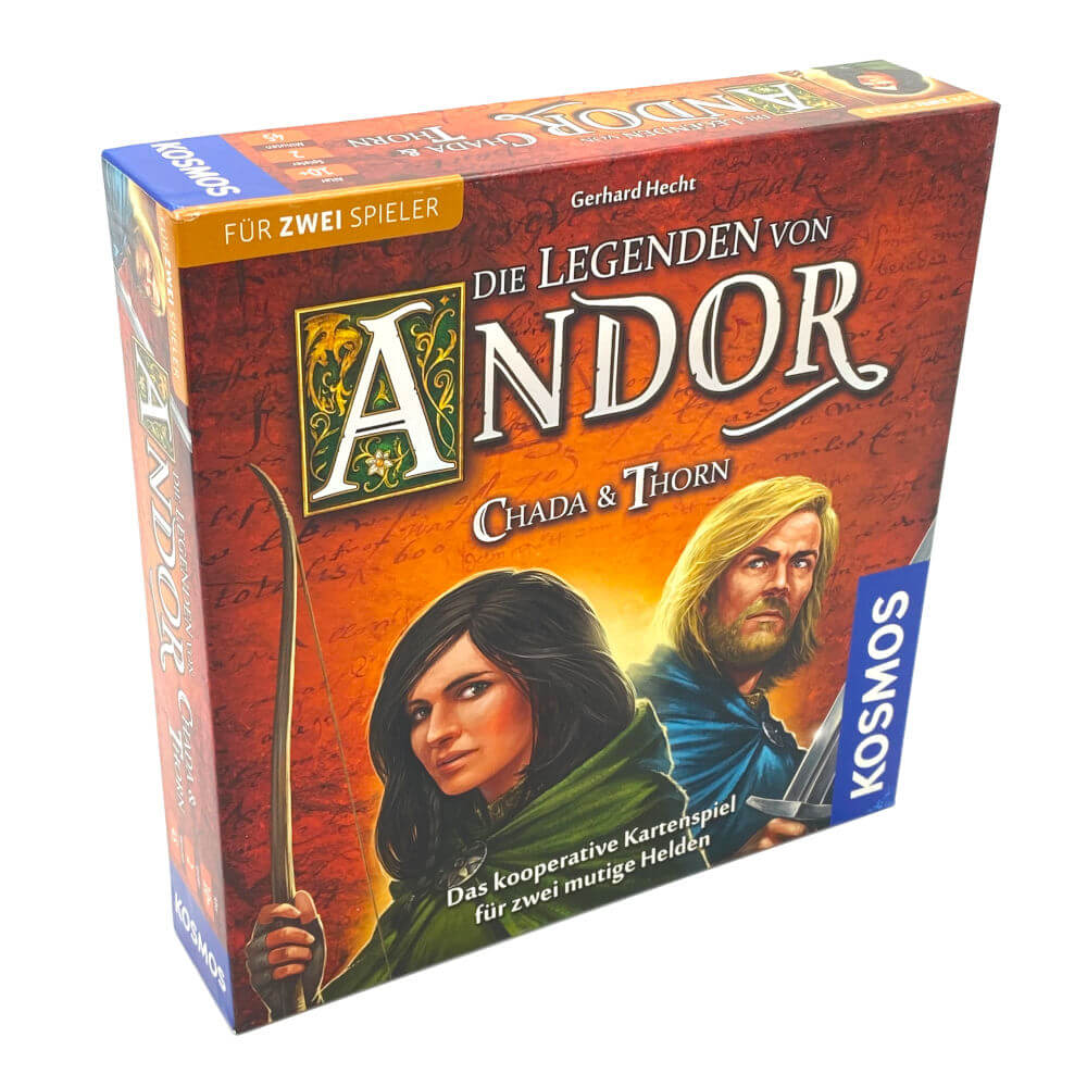 Chada & Thorn ist ein eigenständiges kooperatives Kartenspiel für zwei Spieler*innen. Es ist nicht erforderlich, das Brettspiel von Andor zu kennen!