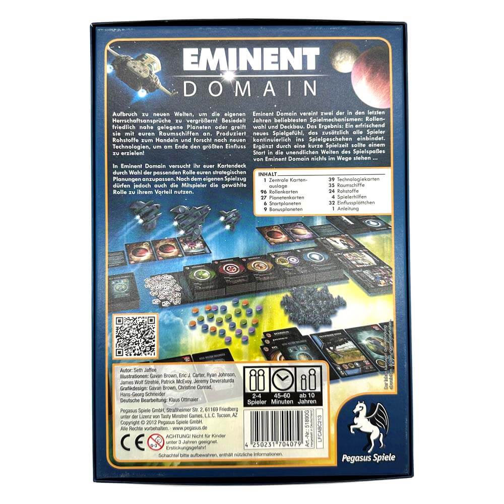 Eminent Domain vereint zwei beliebte Spielmechanismen: Rollen-Wahl und Deckbau. Das Ergebnis: Ein erfrischend neues Spielgefühl, das zusätzlich alle Spieler*innen kontinuierlich ins Spielgeschehen einbindet. Ergänzt durch eine kurze Spielzeit sollte einem Start in die unendlichen Weiten des Spielspaßes von Eminent Domain nichts im Wege stehen…