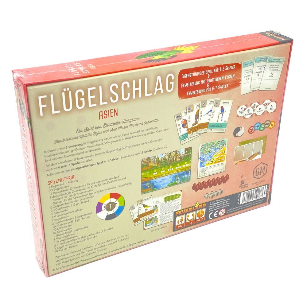 Die Asien Erweiterung von Flügelschlag ist eine tolle Ergänzung für das Grundspiel. Diese Erweiterung ist beliebig mit dem Grundspiel und den anderen Erweiterungen kombinierbar.