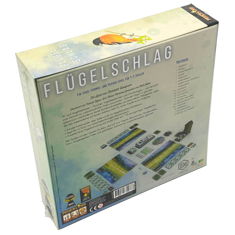 Es gibt drei Lebensräume im Spiel, wobei jeder Lebensraum eigene Aktionen mit sich bringt. Erhalte Futtermarker über Futterwürfel, die du zum Ausspielen der Vogelkarten benötigst. Lege Eier in Form von bunten Miniatureiern. Mit 170 einzigartigen Vogelkarten ist ein sehr hoher Wiederspielwert gesichert.