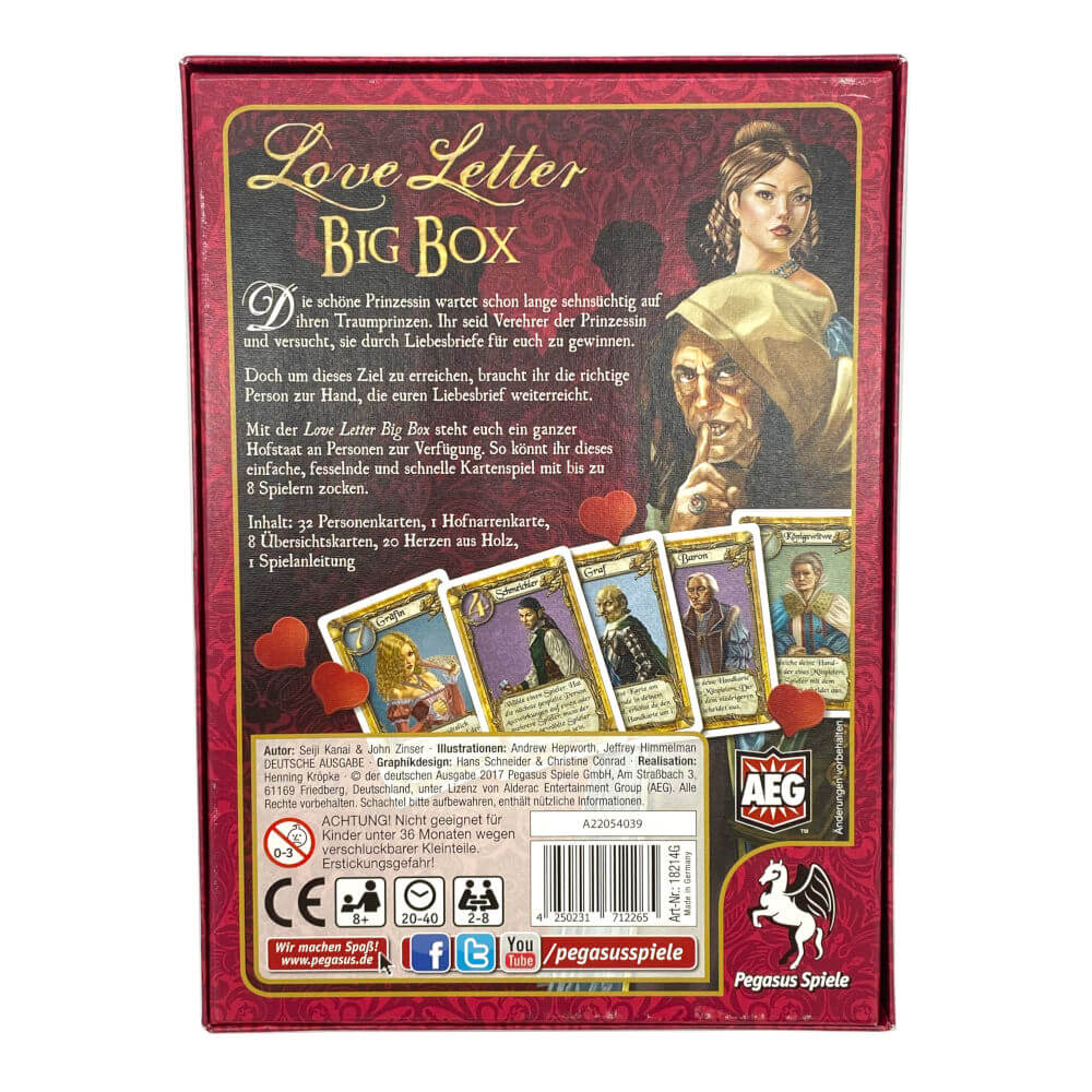 Mit der Love Letter Big Box steht euch ein ganzer Hofstaat an Personen zur Verfügung. So könnt ihr dieses einfache, fesselnde und schnelle Kartenspiel mit bis zu 8 Personen zocken.