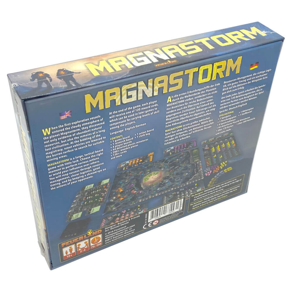 Tauche ein in die faszinierende Welt von Magnastorm, dem hoch strategischen Brettspiel von Feuerland Spiele. In diesem Science-Fiction-Epos übernehmen die Spieler*innen die Rolle von Wissenschaftler*innen, die auf einem fernen Planeten um die Kontrolle über wertvolle Ressourcen konkurrieren.
