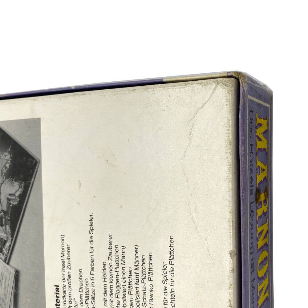 – starke Gebrauchsspuren an der Schachtel (siehe Fotos; Schachtel an den Ecken und an der Rückseite abgeschürft und leicht eingerissen, Ecken geklebt)