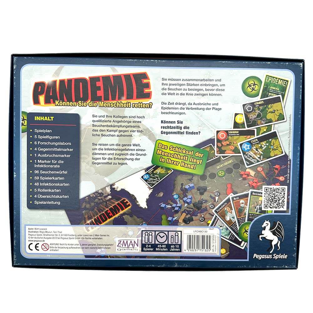 Arbeite mit deinen Kollegen zusammen und bringe deine Stärken ein, damit ihr gemeinsam die Seuchen besiegen könnt, bevor sich diese auf der ganzen Welt ausbreiten. Die Zeit ist knapp, denn Ausbrüche und Epidemien beschleunigen die weltweite Plage. Reise um die ganze Welt, um die Infektionsgefahr in den Griff zu bekommen und ein Gegenmittel zu erforschen.