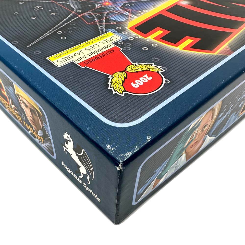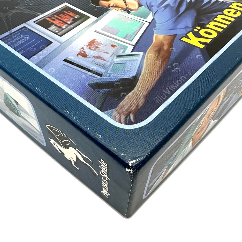 – rundherum Gebrauchsspuren (leichte Abschürfungen abgeschlagene Ecken an der Schachtel)