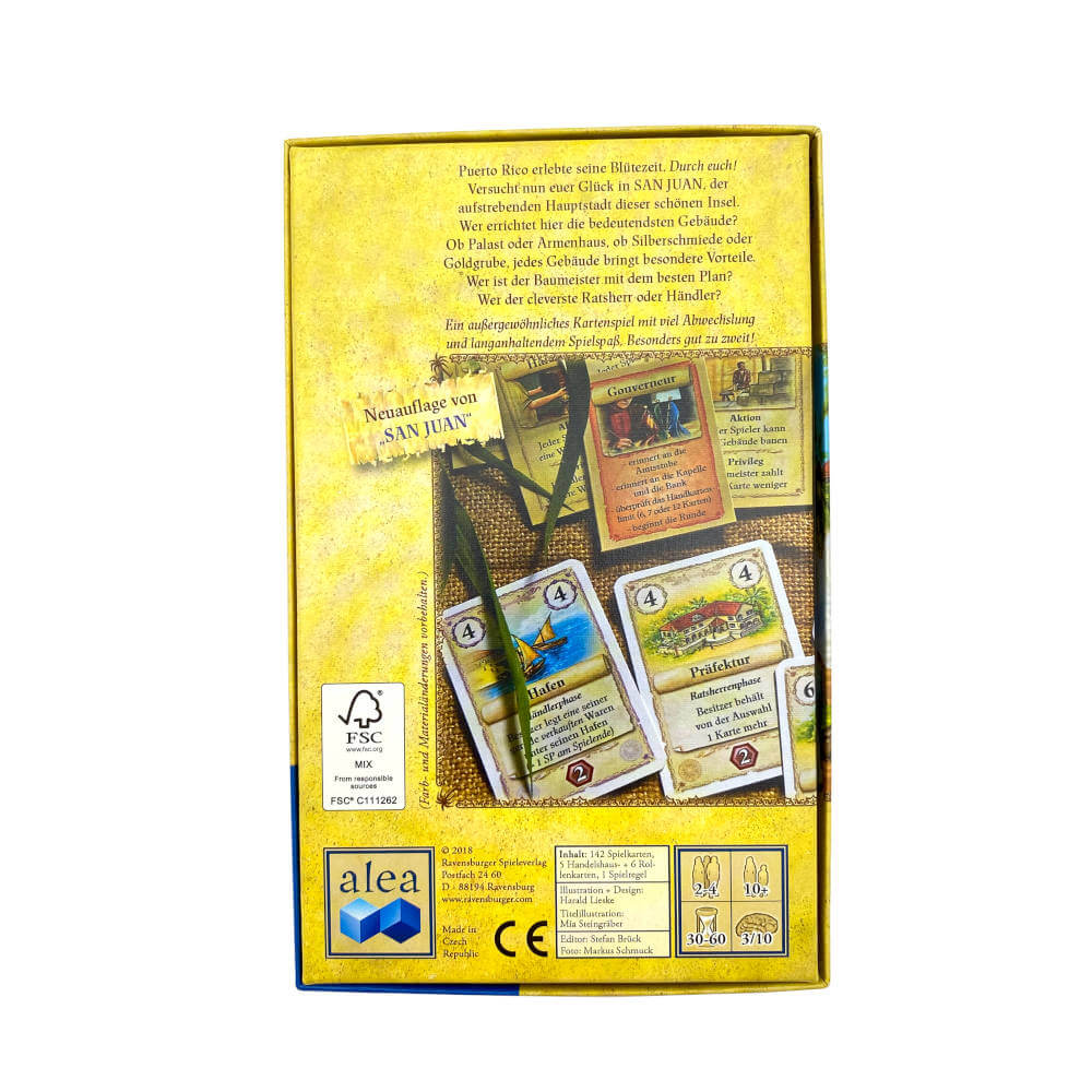 Egal ob du in der Neuen Welt die Rolle eines Goldsuchers, Ratsherren, Gouverneur oder Baumeisters spielst, in Puerto Rico hast du nur ein Ziel vor Augen, und zwar möglichst viel Wohlstand und Ansehen zu erlangen. Errichte die ertragreichsten Produktionsstätten und andere bedeutende Gebäude, um am Ende die meisten Siegpunkte zu erlangen.