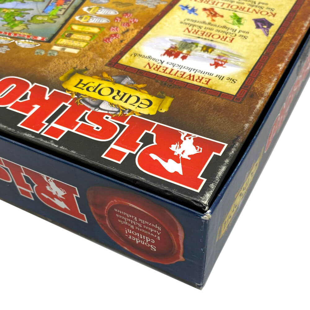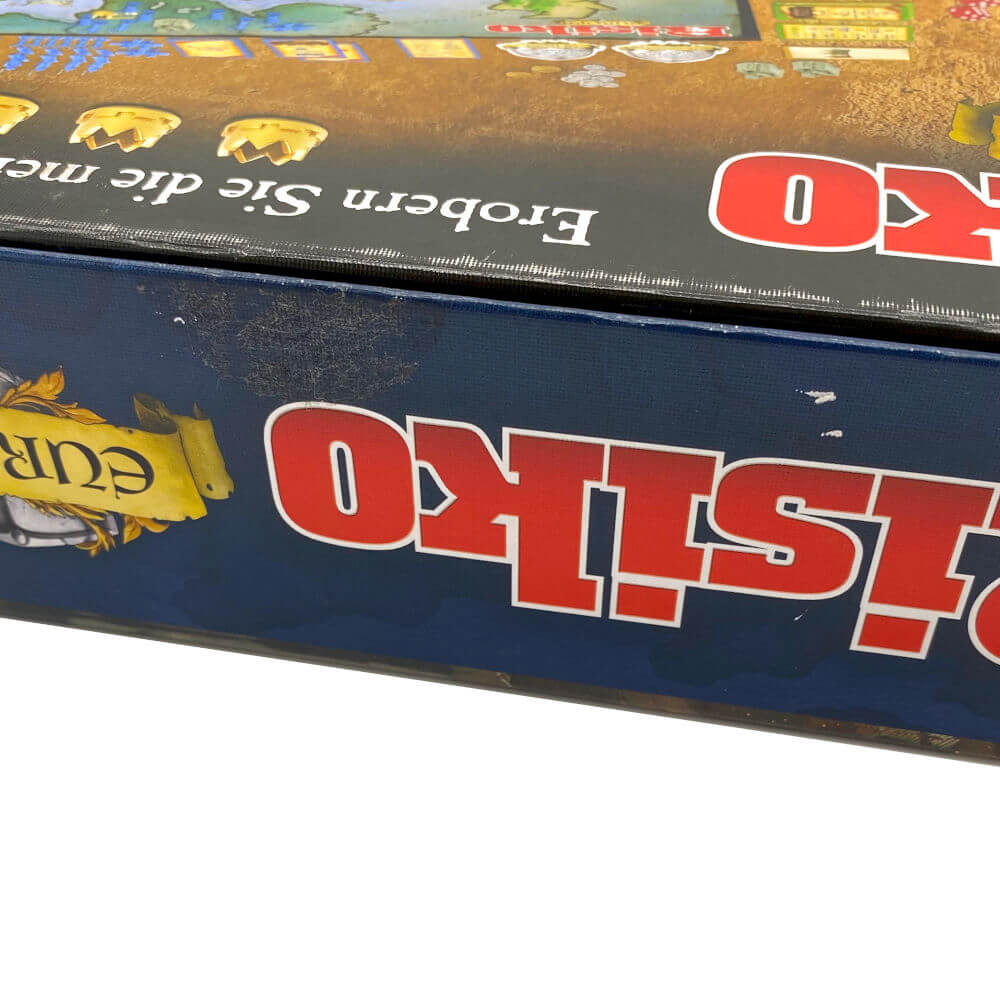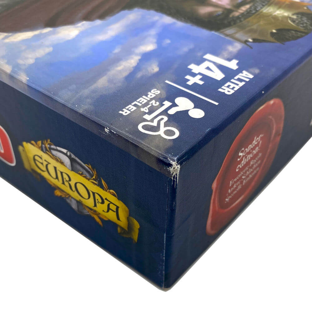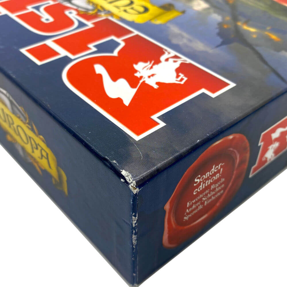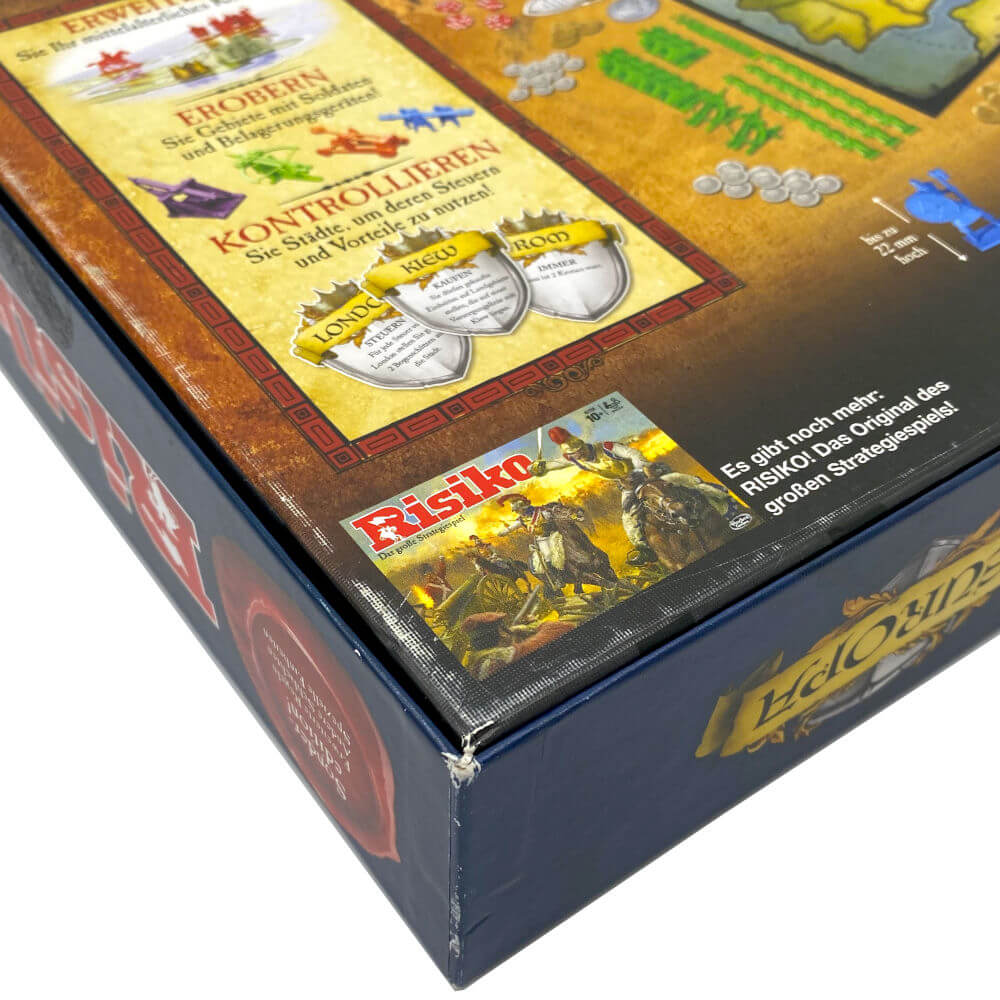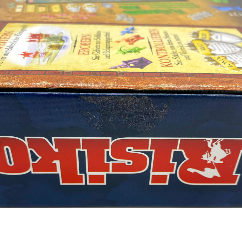 – sichtbare Gebrauchsspuren (Lagerspuren an der Schachtel; Abschürfungen an der Rückseite; Ecken angeschlagen; Klebereste)