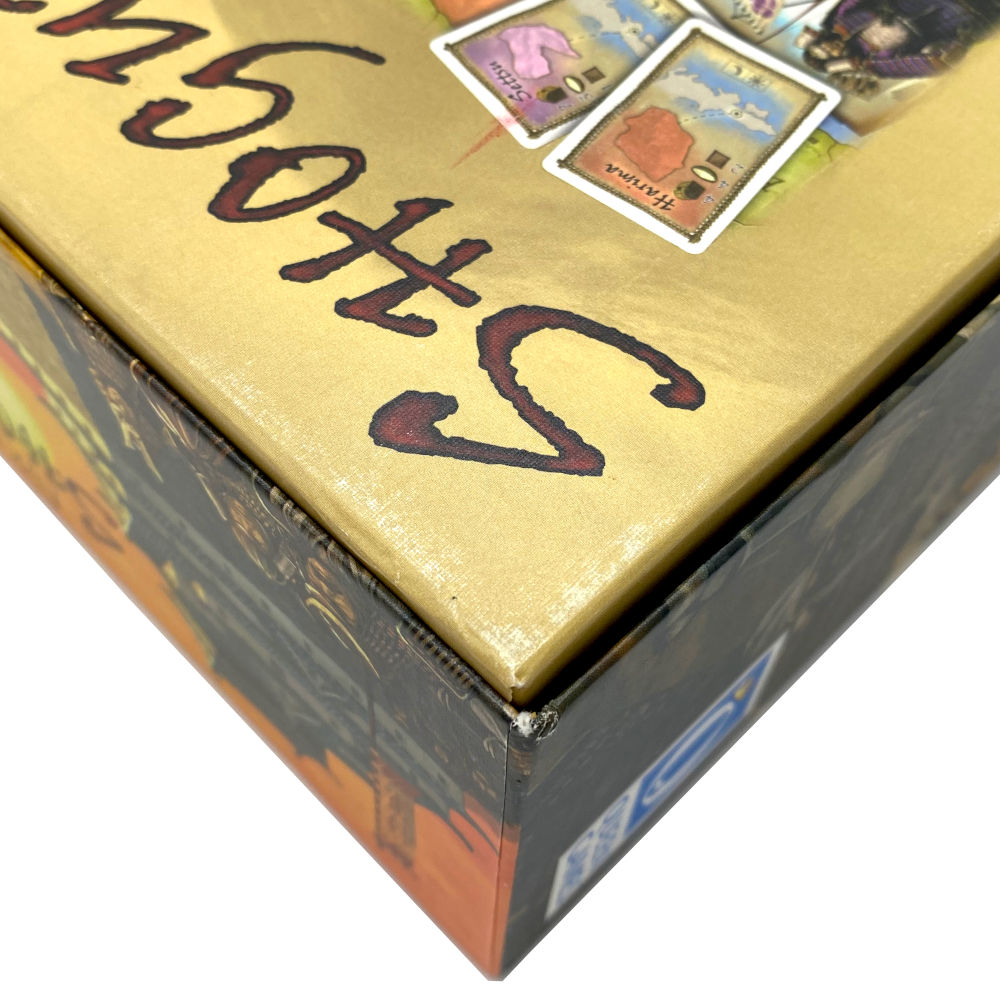 – sichtbare Gebrauchsspuren (Lagerspuren; leichte Kratzer am Deckel der Schachtel; Rückseite der Schachtel etwas eingedrückt, abgeschürfte Ecken)
