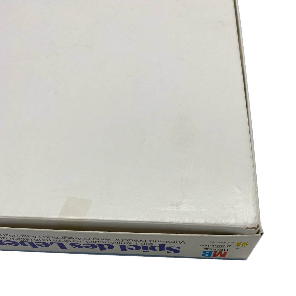 – Gebrauchsspuren aufgrund des Alters (siehe Fotos; Inlay beschädigt, Schachtel abgeschürft und teilweise eingerissen, hauptsächlich an den Ecken beeinträchtigt)