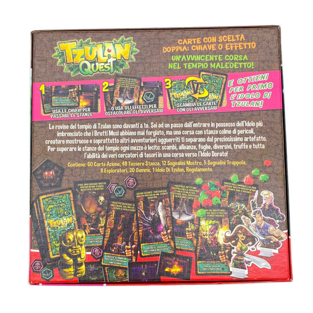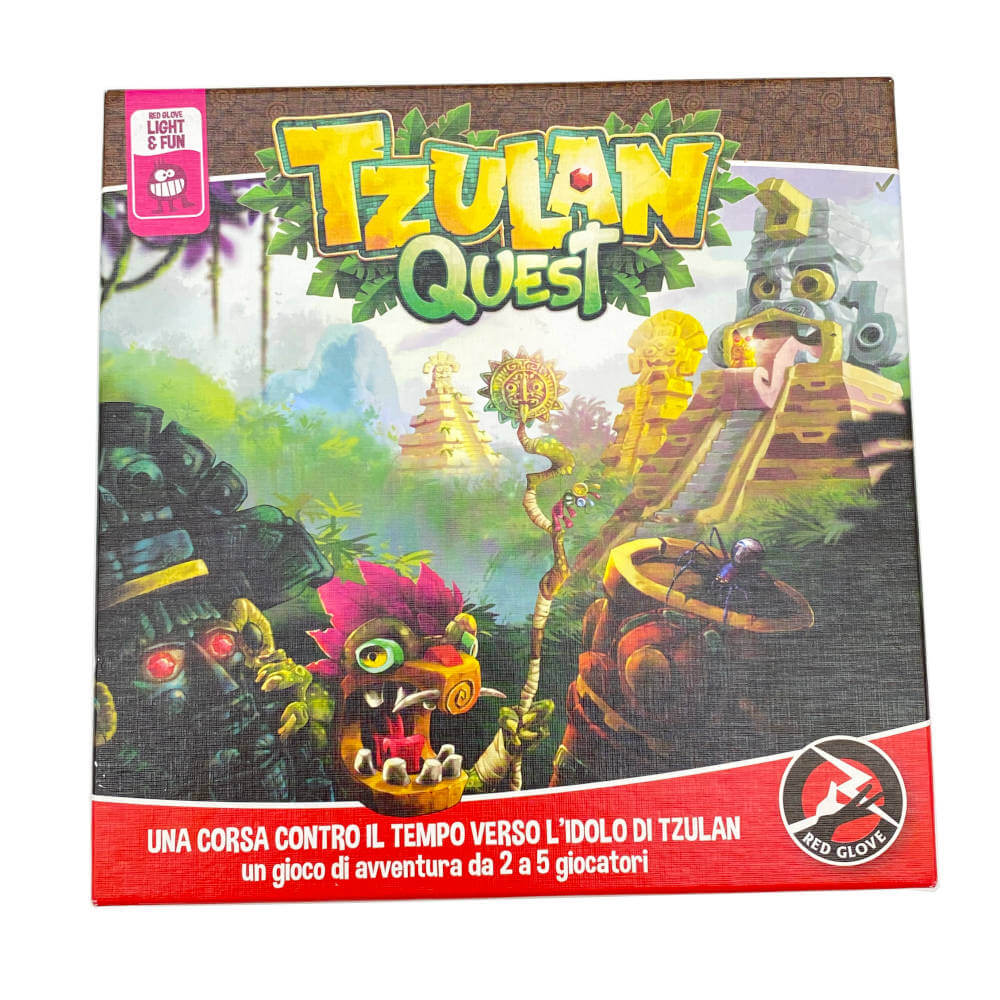 Tzulan Quest ist ein Kartenspiel, bei dem du einen Entdecker in Richtung eines zentralen Raums bewegen musst, um dort das goldene Idol zu erreichen. Auf dem Weg dahin musst du viele gefährliche Räume durchqueren. Dabei kannst du Karten verwenden, um einen bestimmten Raum zu passieren oder um deine Gegner zu verlangsamen.