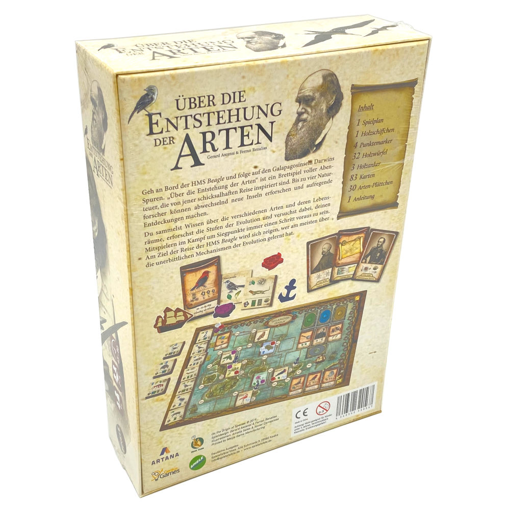 In “Darwin: Über die Entstehung der Arten” erforschst du als einer von bis zu vier Naturforscher*innen neue Inseln und machst aufregende Entdeckungen. Sammle Wissen über die verschiedenen Arten und deren Lebensräume, erforsche die Stufen der Evolution und kämpfe mit deinen Mitspieler*innen um die meisten Siegpunkte. Am Ziel der Reise der HMS Beagle wird sich dann entscheiden, wer am meisten über die faszinierende Evolution gelernt hat.