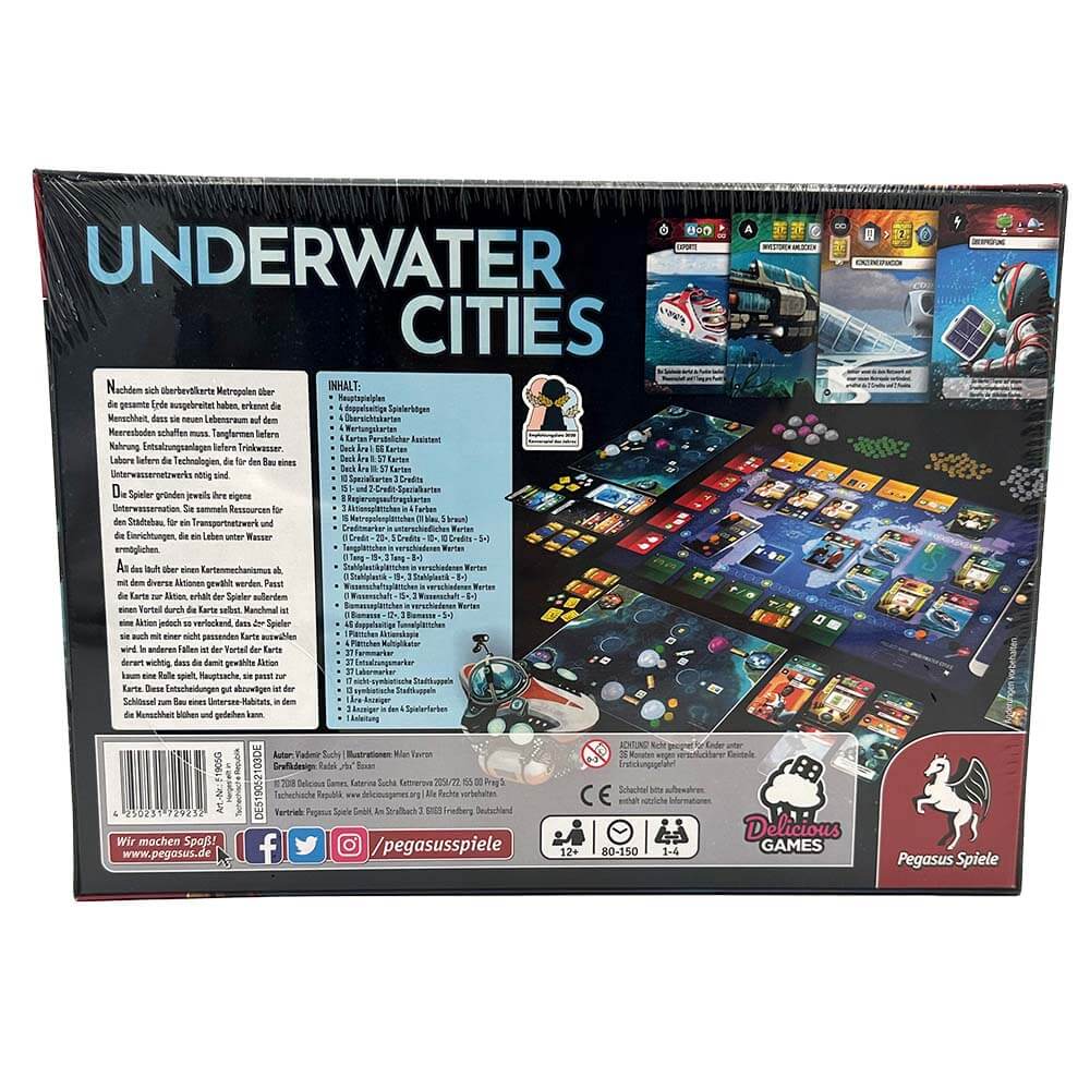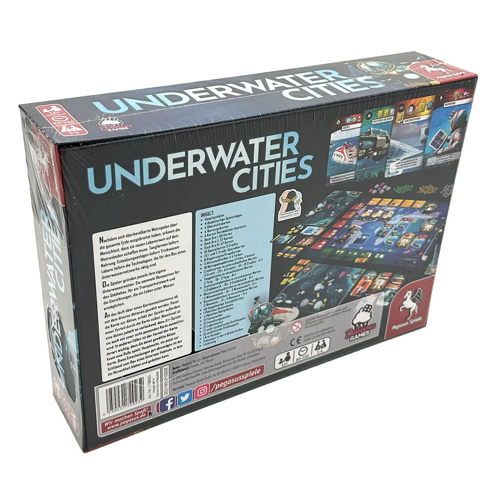 Nachdem sich überbevölkerte Metropolen über die gesamte Erde ausgebreitet haben, erkennt die Menschheit, dass sie neuen Lebensraum auf dem Meeresboden schaffen muss. Seetangfarmen liefern Nahrung. Entsalzungsanlagen sorgen für Trinkwasser. Labore forschen an den Technologien, die für den Bau eines Unterwassernetzwerks nötig sind. In Underwater Cities gründen die Spieler*innen jeweils ihre eigene Unterwassernation. Sie sammeln Ressourcen für den Städtebau, für ein Transportnetzwerk und die Einrichtungen, die ein Leben unter Wasser ermöglichen.