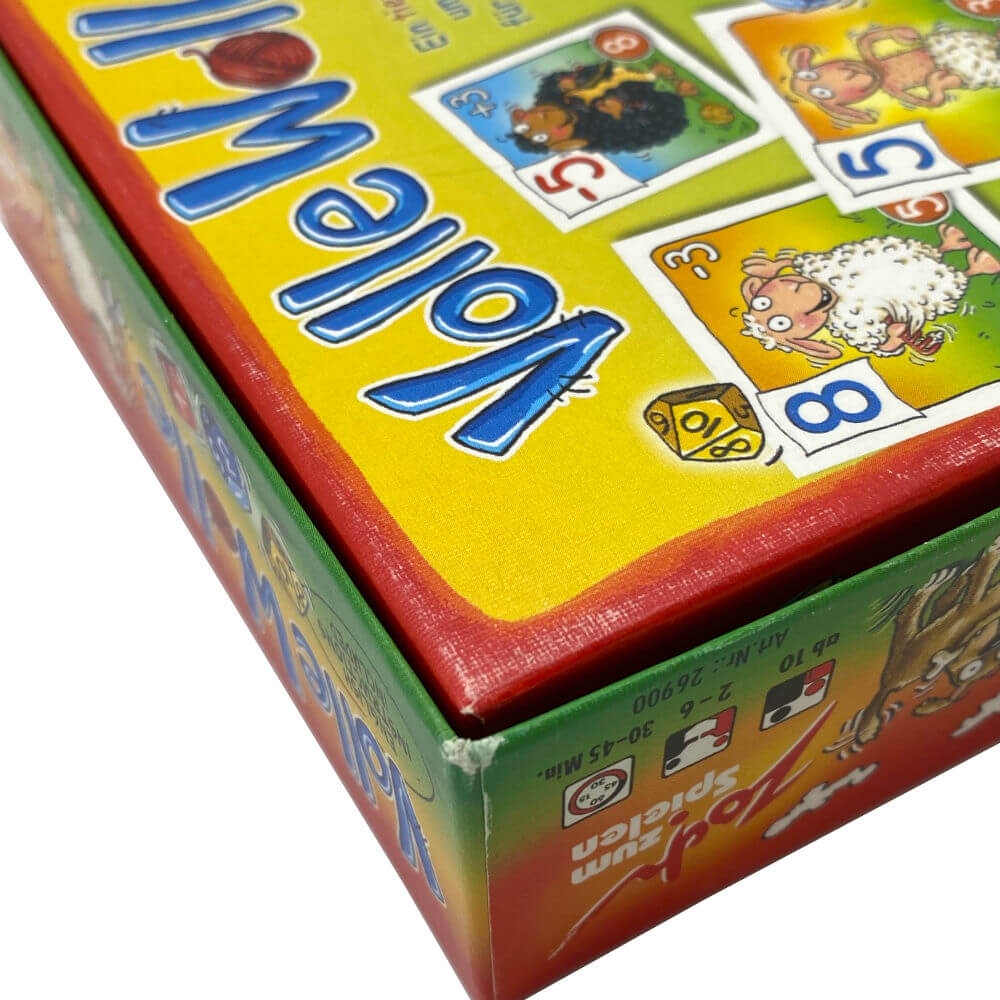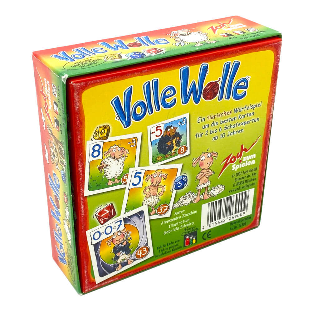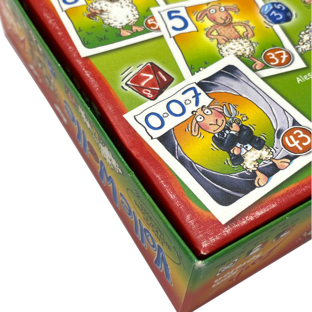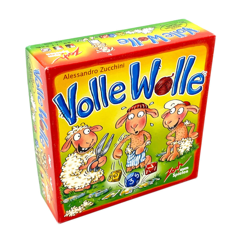 In Volle Wolle würfelst du um die wertvollsten Schafkarten. Beginnen darf, wer sich das höchste Würfelergebnis zutraut. Wird es erreicht, so hast du dann die Auswahl aus den besten Karten. Schaffst du aber das genannte Würfelergebnis nicht, dann dürfen die Mitspieler*innen mit geringerem Würfelergebnis diese Karten “abgrasen”. Wer zuletzt dran kommt, würfelt nicht, sondern nimmt einfach alles, was übrig bleibt.