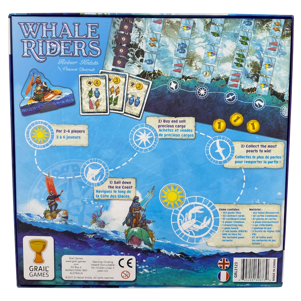 Du bist einer der Wal-Reiter, die schon seit Generationen mit den Eiswalen zusammenleben. Du hast die Ehre, als letzter deiner Familie mit den Eiswalen zu segeln. Aber das Eis wird dicker und die Gletscher bewegen sich. Ein harter Winter kommt immer näher. Du entscheidest dich dazu, den Wal ein letztes Mal vor dem ersten Schneefall zu reiten, um an den Häfen so viele Waren wie möglich zu kaufen und zu verkaufen. Und vielleicht kannst du dabei auch einige der wertvollen Perlen sammeln.