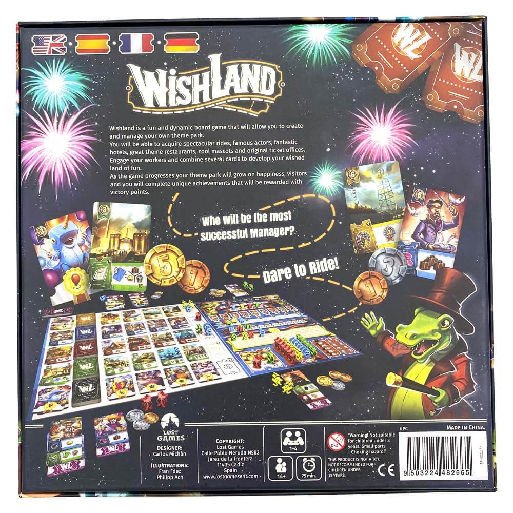 Wishland ist ein lustiges und dynamisches Brettspiel mit Worker Placement Elementen. Hier verwaltest du deinen Freizeitpark und versuchst in 7 Runden die meisten Siegpunkte zu erlangen.